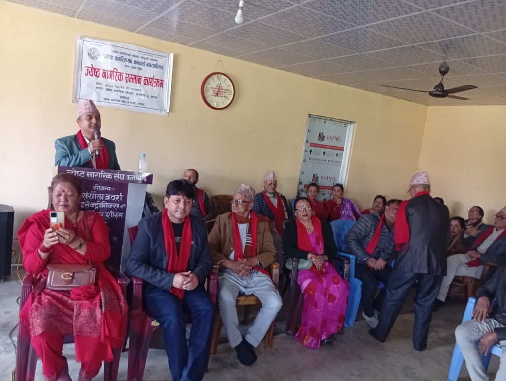 सम्मान कार्यक्रम अघि सो ज्येष्ठ चौतारीमा नियमित भजन कीर्तनको कार्यक्रम गरिएको थियो । कार्यक्रममा बोल्दै राष्ट्रिय ज्येष्ठ नागरिक महासंघका केन्द्रीय सदस्य तथा पत्रकार दाहालले कुनै खास विशेष दिन मात्र नभएर ज्येष्ठ नागरिकहरुलाई घर परिवार र समाजका बोली र व्यवहारले दिनहुँ सम्मान गरेमात्र साँचो अर्थको सम्मान हुने बताए । दाहालले पछिल्लो समयमा सन्तानहरु उच्च शिक्षा तथा रोजगारीका लागि विदेश या स्वदेशमा टाढा रहने भएकाले ज्येष्ठ नागरिकहरुले एक्लो, निरश र स्याहाविहीन अवस्थामा जीवन विताइरहनुपरेको हुँदा त्यसको उचित व्यवस्थापनका लागि राज्य र सरकारले यथोचित पहलकदमी लिनुपर्ने धारणा राखे ।